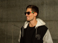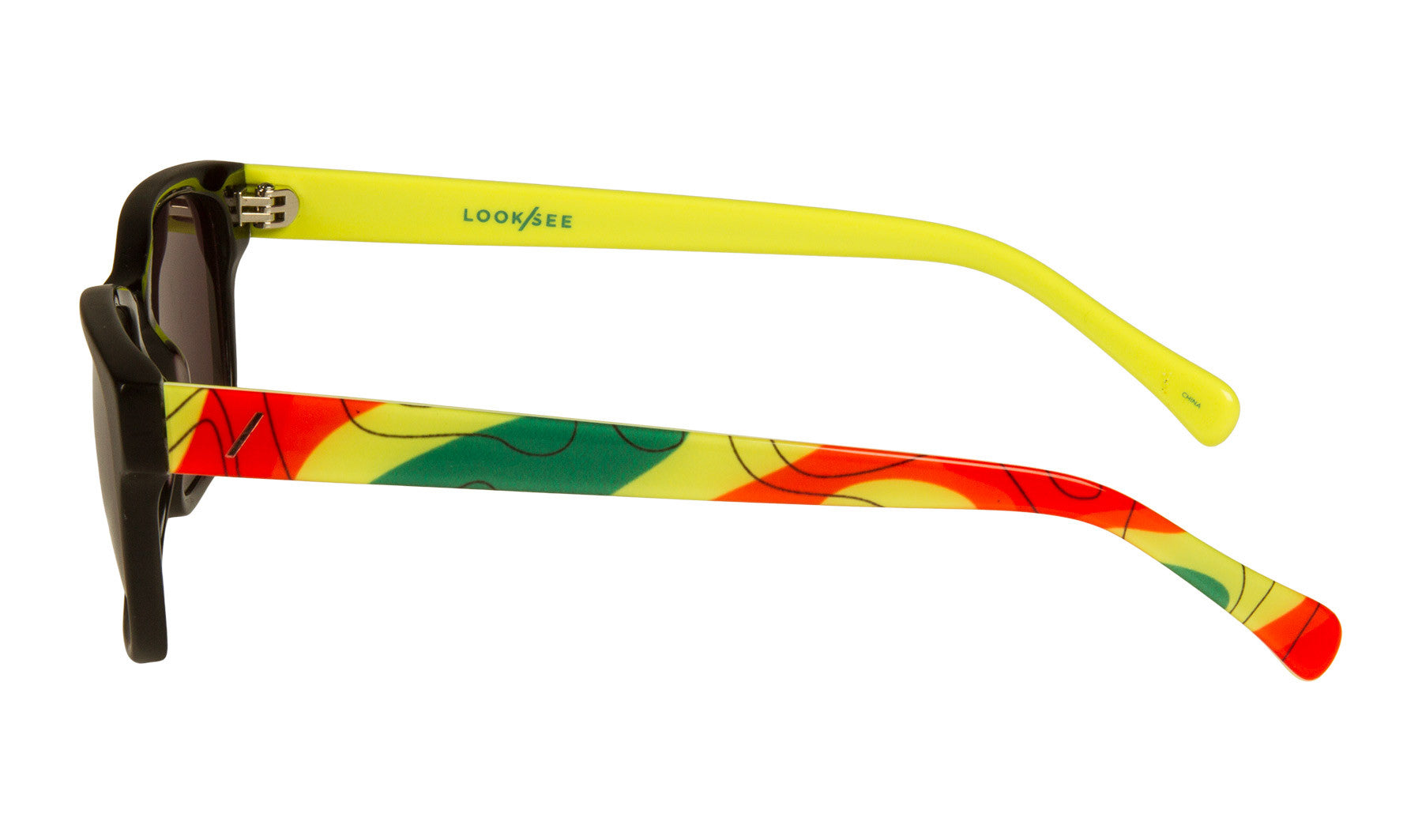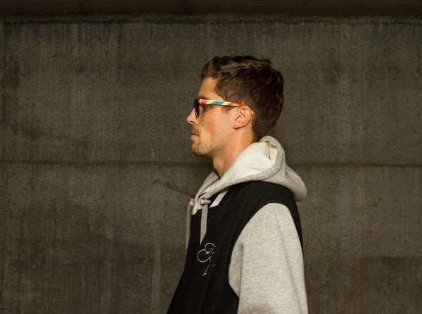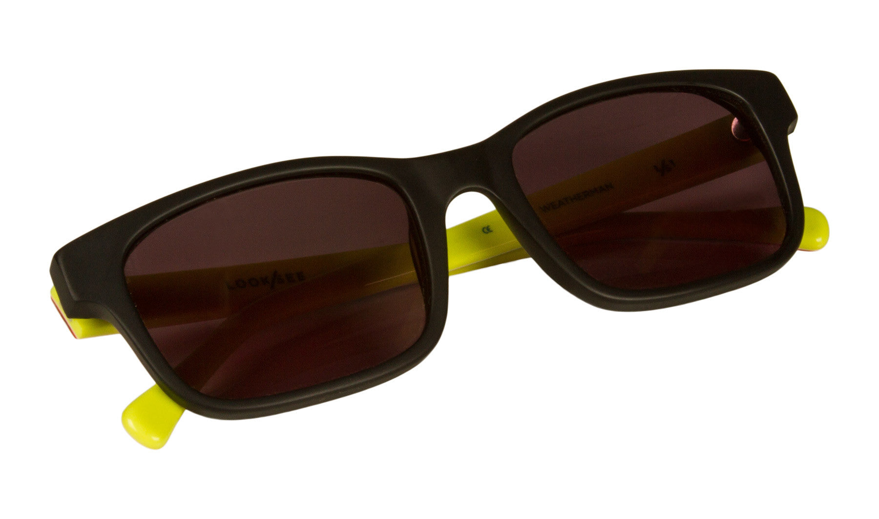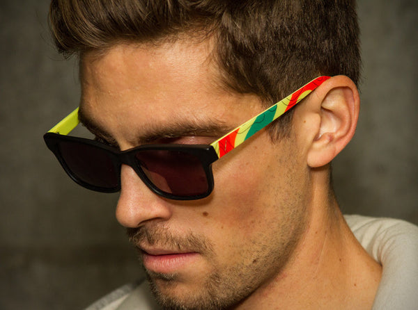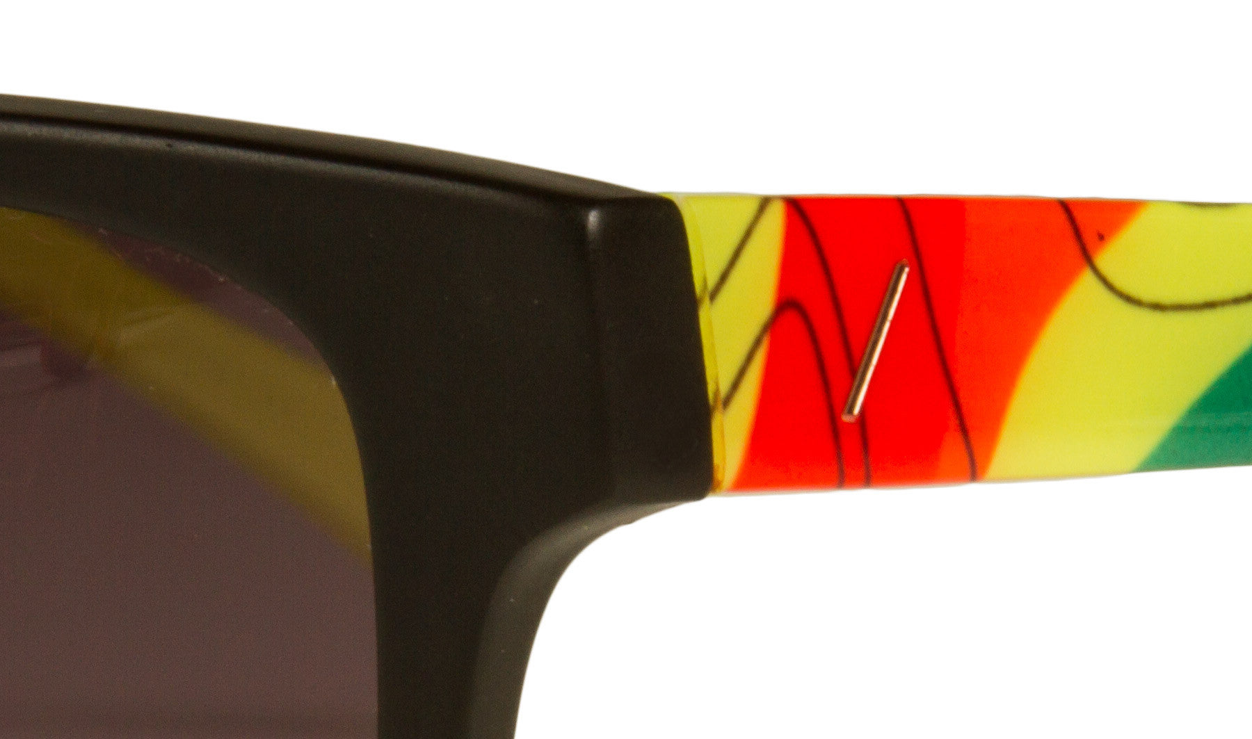 PRODUCT: Each pair is handmade from high quality custom acetate with "weatherman" graphic on the temples.